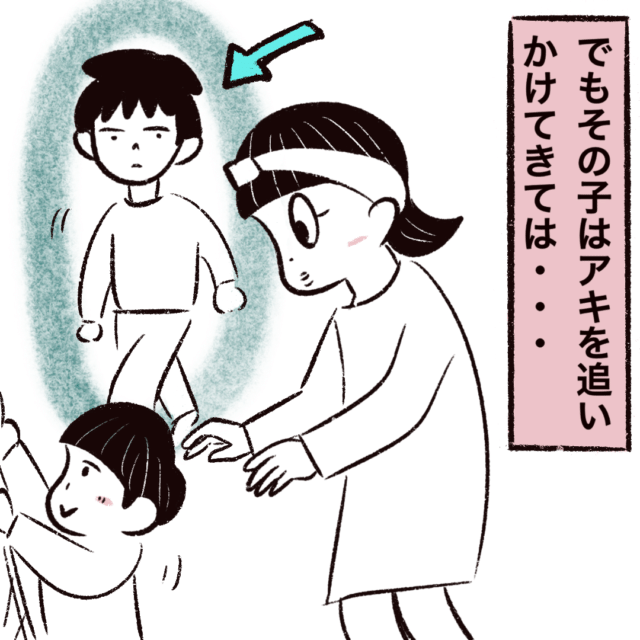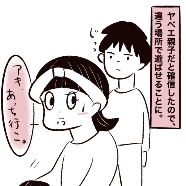 息子アキくんがまだ3歳の頃のこと、とあるショッピングモールのキッズスペースで遊んでいると、5歳くらいの男の子がなぜか執拗にアキくんを蹴ってきて・・「お兄ちゃん、蹴られたら痛いよ!蹴らないで!」と注意すると、近くでスマホ片手に座っていた母親が「『蹴ってるようにみえちゃう』から、小さい子に[ぶつかっちゃ』ダメだよー?」と言い、思わず「この親・・マジか」と怒りが・・