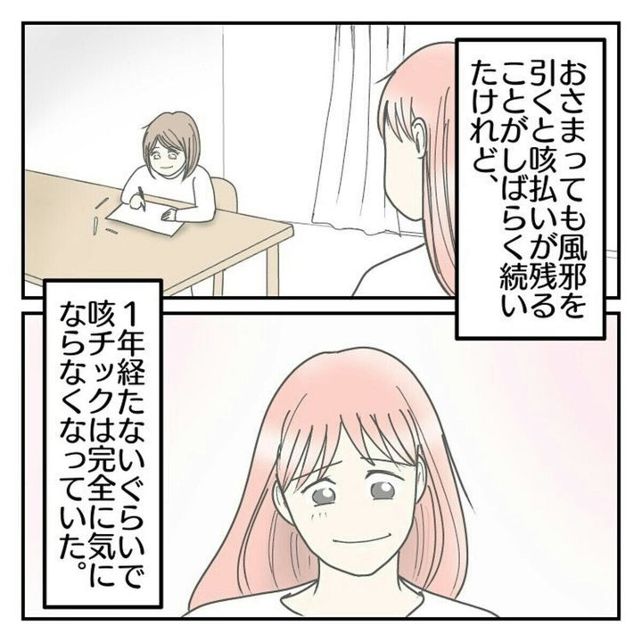 わっちちゃんの咳はチックが原因だとわかり、まずは漢方薬と咳が出ても無視をして意識させないことをやってみることにしたねこじまさん。咳が出そうになったら気を逸らしてあげたり、寝る前にゆっくりと本を読む時間を取るなど親子で過ごす時間をこれまで以上に意識するようになったようです。