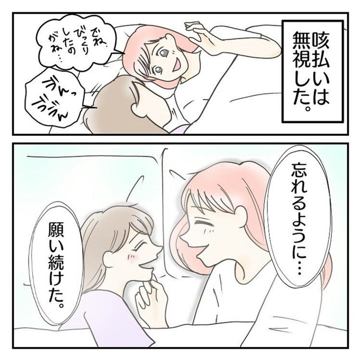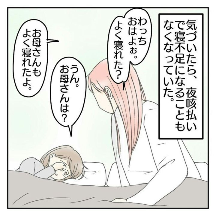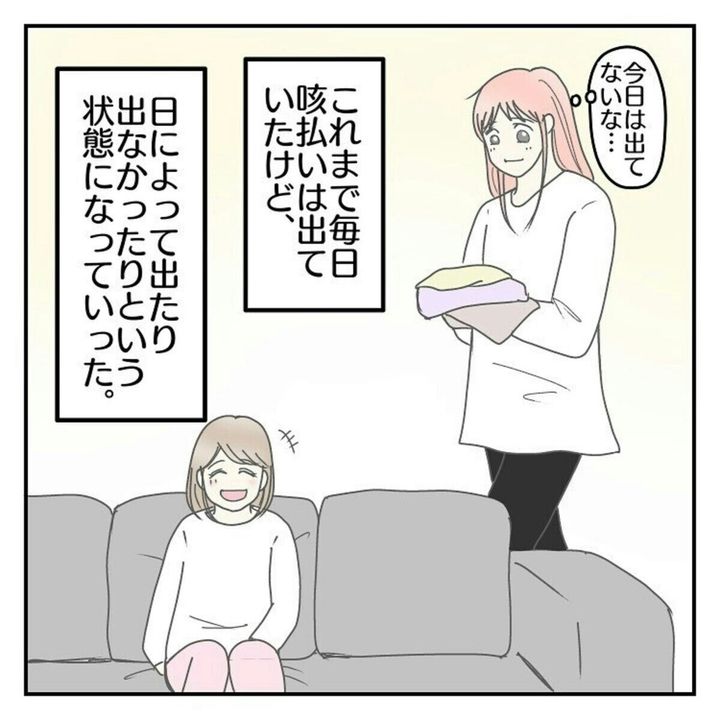 そんな変化の甲斐があってか、わっちちゃんの咳は少しずつよくなっているようです。子どもはとても繊細ですし、大人の表情や態度を見てさまざまなことを理解しますよね。きっとねこじまさんと夫の変化にも気付いていたはずですし、うれしく思っていたのではないでしょうか。