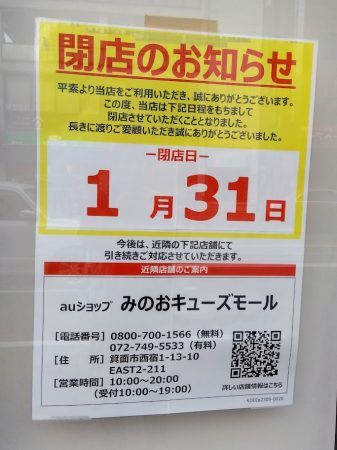 今後は、近隣のauショップ みのおキューズモールにて引き続き対応してもらえるようです。