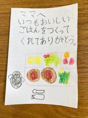 こちらは実際にわが家の子どもが書いた手紙ですが、文章に合わせて絵も一緒に書いても良いですね。