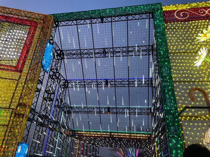 ドイツ村のイルミネーションといえば元祖虹のトンネル。写真にも映える人気のスポットです。