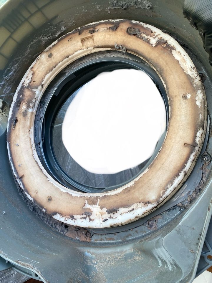 洗濯機内の丸いパッキンの間にある埃や