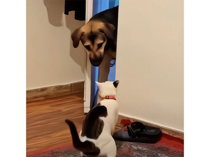3. 理不尽すぎるでも猫には敵わない犬さん。