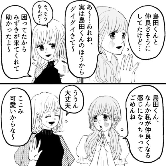 そこに来ていた島田くんに惹かれ、主人公は島田くんが気になっているのを友だちのここみちゃんに報告しました。