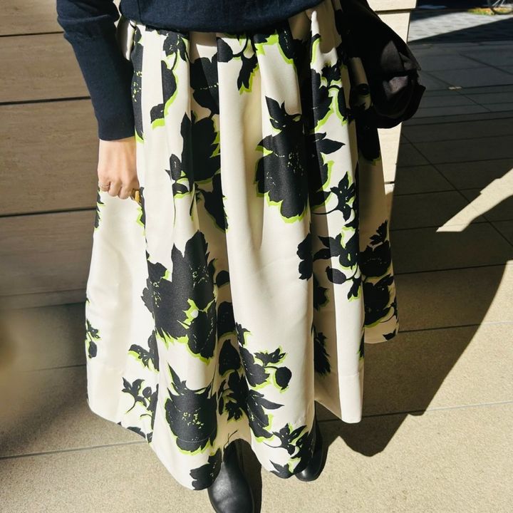 花柄なのにモダンにまとまっている点に惹かれて購入。スカート¥39,600(エストネーション)