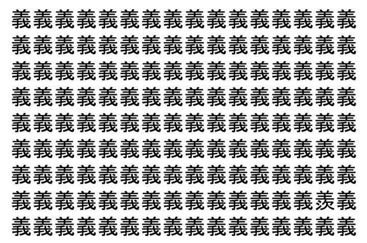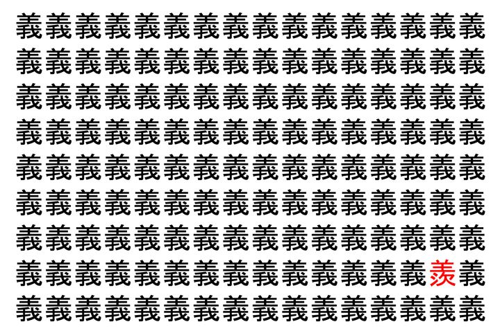 【脳トレ】「義」の中に紛れて1つ違う文字がある!?あなたは何秒で探し出せるかな??【違う文字を探せ!】