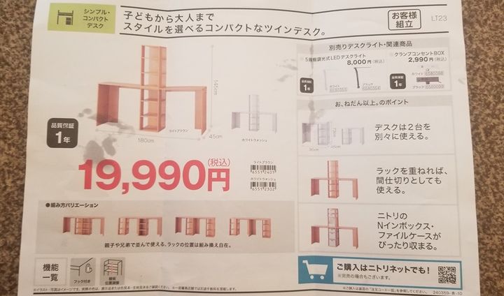 本日はリビング学習にぴったりなニトリのツインデスクを購入したのでご紹介します。