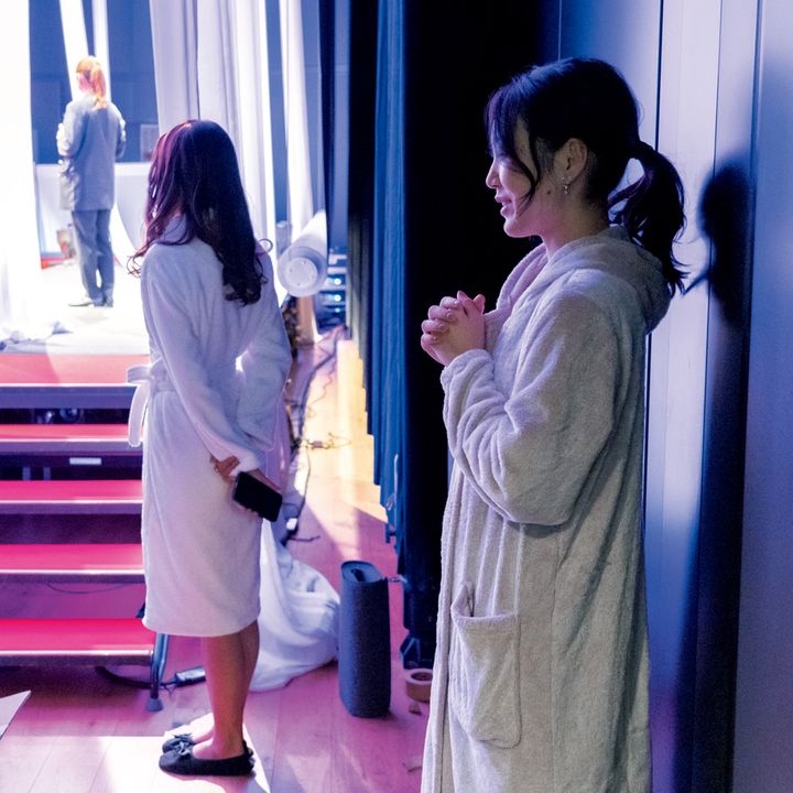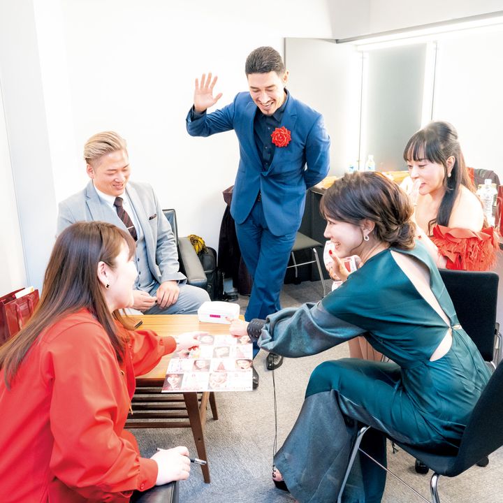 ファイナルはレインボーカラーのドレス姿で登場。会場には応援団も詰めかけ、熱気で最高潮に。審査員、会場、SHOW ROOMの票でグランプリが決定。審査結果の待ち時間にはやり切った達成感の笑顔で撮影タイム。面接から5カ月間駆け抜け、様々な試練を乗り越えてきた同志であり、大切な仲間の絆が見られました。