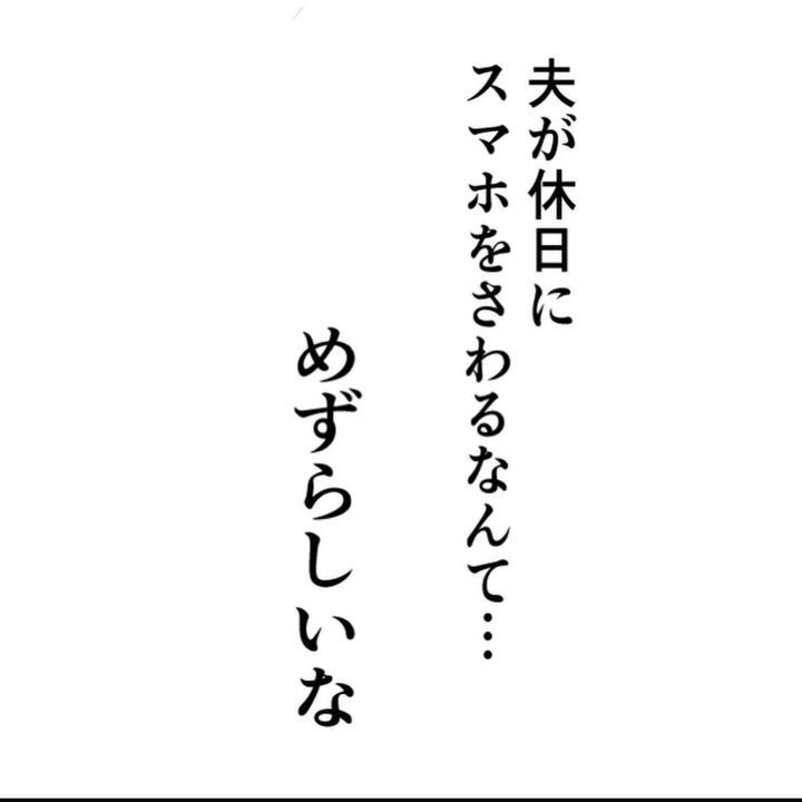 夫は、家ではスマホにあまり触る人ではありませんでした。しかし、ある日から気がつくとスマホばかり触るようになります。はじめは小さな違和感だっためぐみさん。ですがその違和感はどんどん疑いへの変わっていくのでした…。