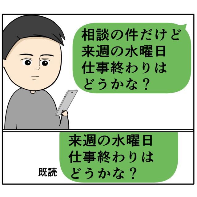 「相談の件だけど、来週の水曜日、仕事終わりはどうかな?」