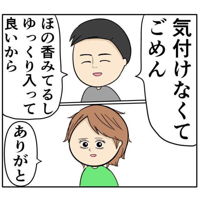 「気づけなくてごめん。ほの香見てるし、ゆっくり入って良いから」
