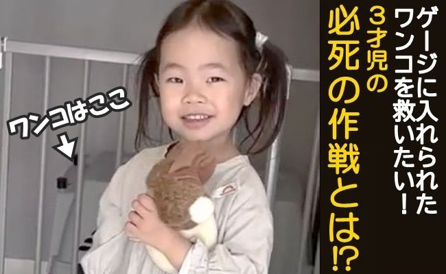 5.7万回再生!ゲージに入れられたワンコを見た女の子→出してあげたい3歳児の驚きの作戦とは!?