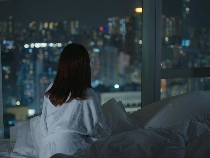 ホテルのベッドの上で、咲奈は休暇中に似つかわしくない苦悶の表情をうかべている。
