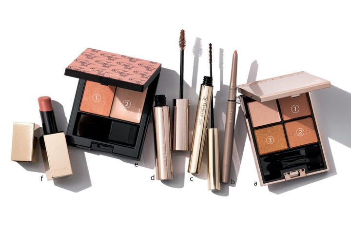 a.キレイめにもカジュアルにも、振り幅の広いオレンジベージュ。ルナソル アイカラーレーション 23 ¥6,820 ※2月9日発売(カネボウ化粧品) b.多光パールをペンシル型に固めたアイライナー。透け感と多幸感にあふれる、ピュアコーラルの輝き。オペラ アイカラーペンシル103 ¥1,650※3月15日発売、限定品(イミュカスタマーセンター) c.3.2㎜の超極細ブラシが使いやすい!根元からしっかり立ち上げて、存在感のある上向きまつ毛に。エレガンス カールアメイジング マスカラ BR20 ¥4,400 ※2月18日発売(エレガンス コスメティックス)d.黒い自眉を羽根のように軽やかに仕上げるクリーミーな色合い。ルナソル フェザリーアイブロウジェル 01 ¥3,300※2月9日発売(カネボウ化粧品) e.肌色を選ばず使いやすいテラコッタカラー。チークはもちろん、目元やリップにもマルチユース。セルヴォーク ポリフォニックブラッシュ EX01 ¥5,390※2月9日発売、限定品(セルヴォーク) f.美人見えとモード感を兼ね備えたベージュ。体温に反応してとろけるエモリエントオイルにより、品のあるツヤも。スナイデル ルージュ スナイデル n 01 ¥3,300(SNIDEL BEAUTY)