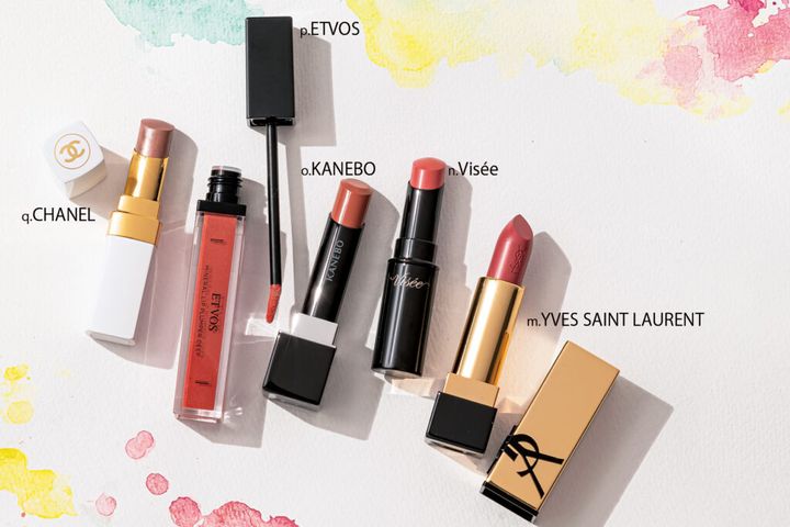 m.顔色をくすませない絶妙なヌードカラー。キレイめからモード顔まで様々なテイストのメークと好相性。ルージュ ピュールクチュール N5¥6,050(イヴ・サンローラン・ボーテ) n.ピーチベージュの粘膜カラーでむっちりした唇に。ヴィセ ネンマク フェイクルージュ BE351 ¥1,540※編集部調べ、限定品(コーセー) o.美容液のうるおい膜が唇を覆い、シワも目立たない!カネボウ ルージュスターヴァイブラント V09¥4,620(カネボウインターナショナルDiv.) p.プランパー効果でぷっくり。素の唇がキレイに見えるコーラルベージュ。ミネラルリッププランパー ディープ キャロットピーチ¥3,300※限定品(エトヴォス) q.洒落っ気のあるダークモーヴが一度塗りならシアーに、重ねるとしっかり発色。シャネル ルージュ ココ ボーム 938 ¥4,950(シャネル)