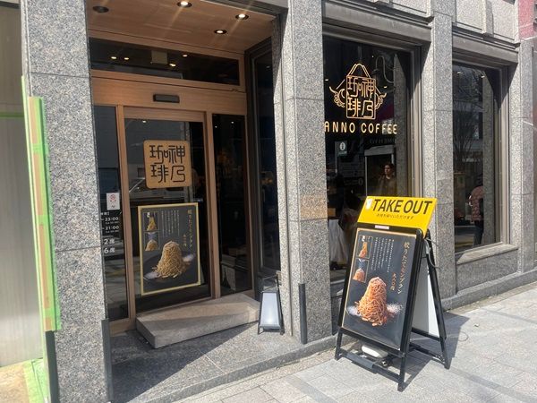今回は「神乃珈琲新宿東口」に行ってみました。新宿駅東口から徒歩3分ほどの場所にあります。新宿駅を背にして歌舞伎町方面へと進むこの道にある看板は見たことがある人も多いのではないでしょうか。