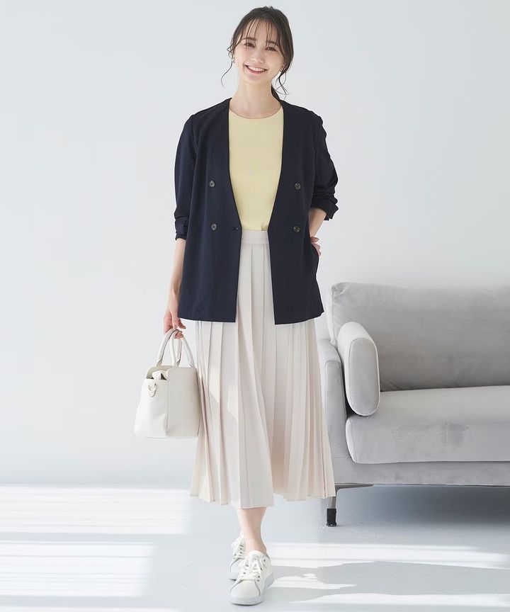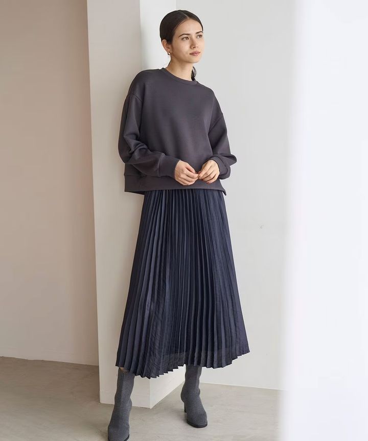プリーツスカートのヒダは細かいとフェミニンに、大きいとクラシカルさが増します。
