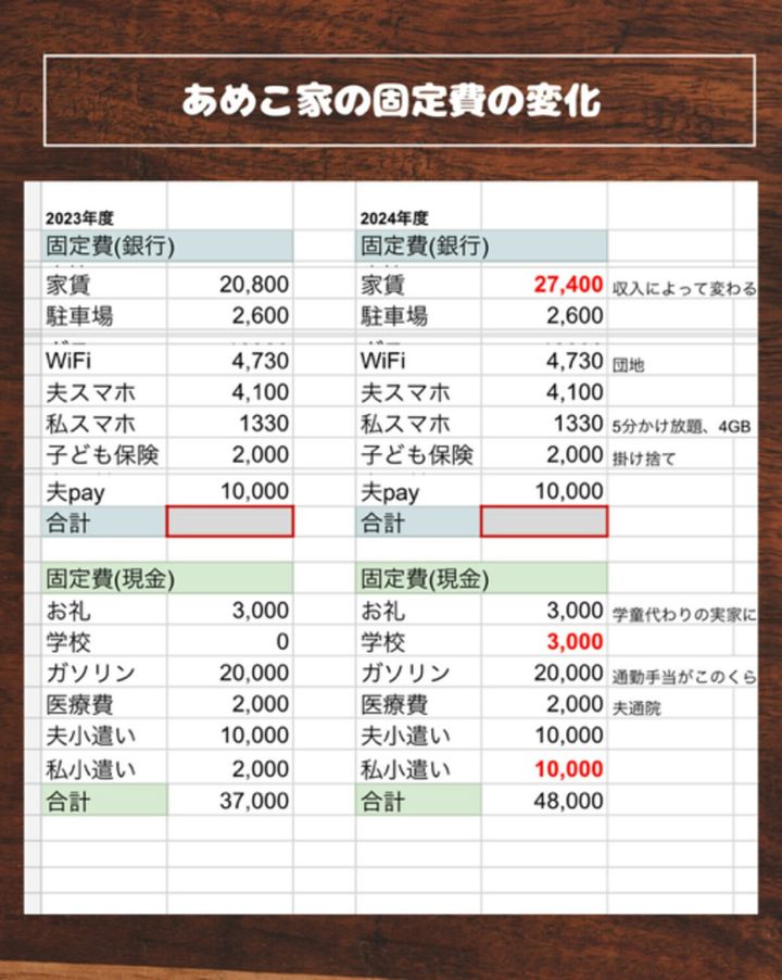 夫のスマホ代や車関係、お小遣いも減らすことは難しいので割り切っています。