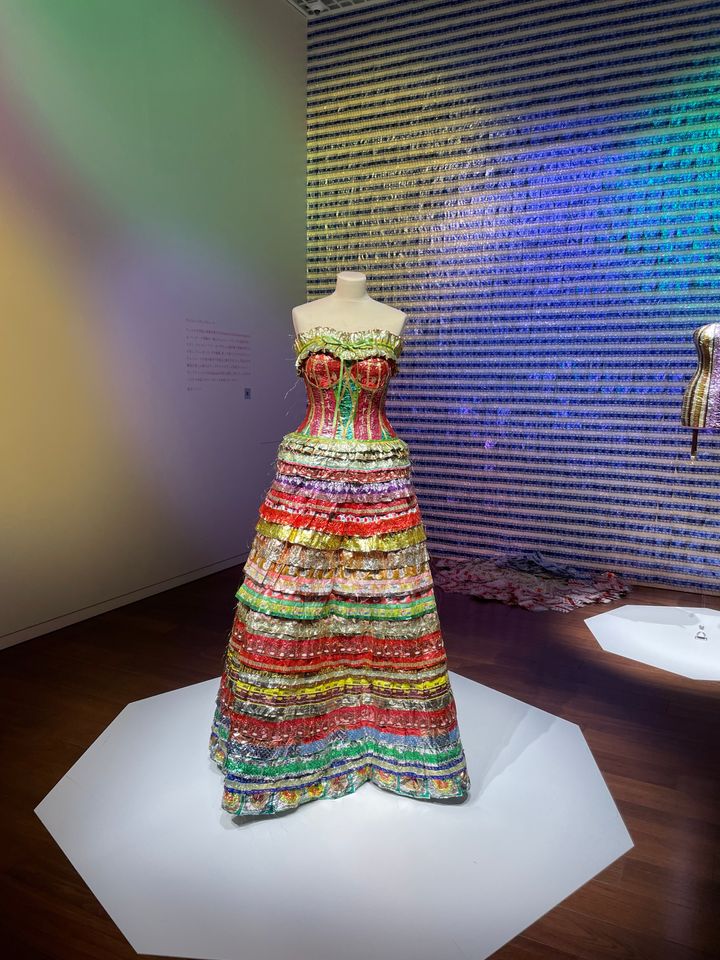 こちらは、チョコレートと飴の包み紙でできたドレスです!