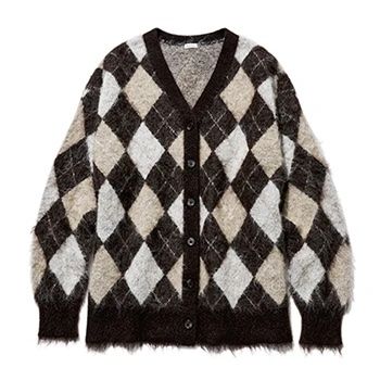 ブラウンアーガイル柄ニットカーディガン 55,000円/ブリル(ブリル ニュウマン新宿) 主張の強い柄も、前開きカーデならアレンジしやすい。大きめなサイジングも好都合。