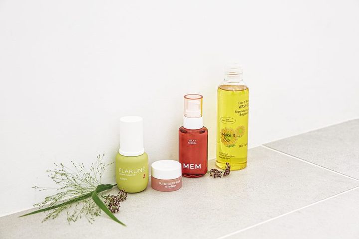 (写真左から) 肌のゴワつきやザラつきが気になるときに。酸化ダメージを受けた肌をなめらかに整え、透明感のある明るい肌に導く美白美容液。アルビオン フラルネ ブライトチューナー YR(医薬部外品)40mL ¥5,500/アルビオン、水分を一切加えないウォーターフリー処方を実現。ダメージを修復し、ふっくらとやわらかい唇に。シスレー バーム コンフォール N 9g ¥10,450/シスレージャパン、肌の土台にアプローチする美容成分を贅沢に配合し、ハリと弾力のある肌へ。マッサージもできる、とろんとしたミルクテクスチャー。MEM セラミルク 35mL ¥8,910/メムお客様相談室、豊富なビタミンと20種類のアミノ酸を含む大豆油がベースの美容液クレンジング。Make It & Co. フェイス&ボディウォッシュオイル RM 200mL ¥9,960/メイクイットアンドコー