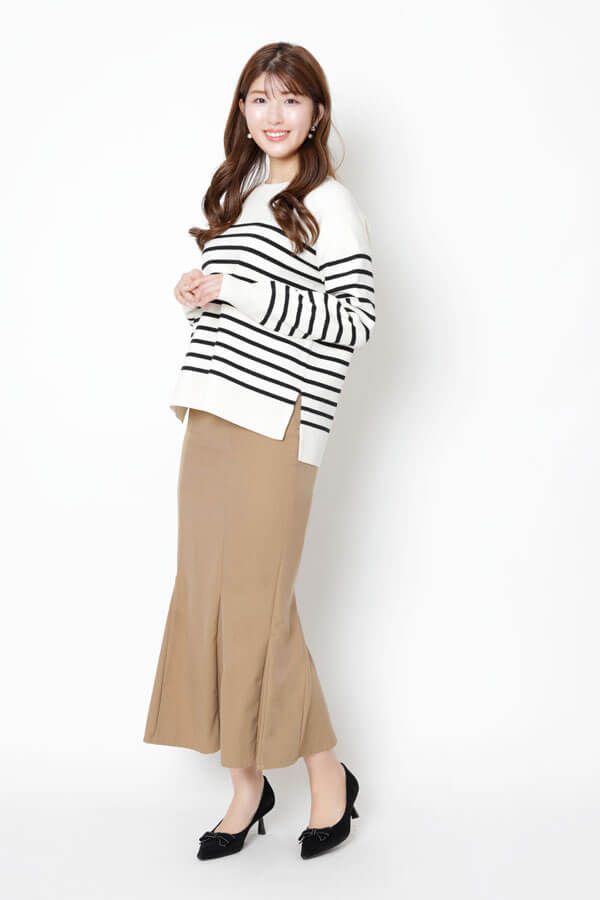 【冬コーデ】マーメイドスカートでボーダーを女っぽく着こなして