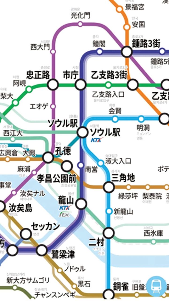 韓国の地下鉄の路線図や運行情報を確認できる無料アプリ。日本の乗り換え案内アプリのように、地下鉄の乗り換え方法を案内してくれるので便利。