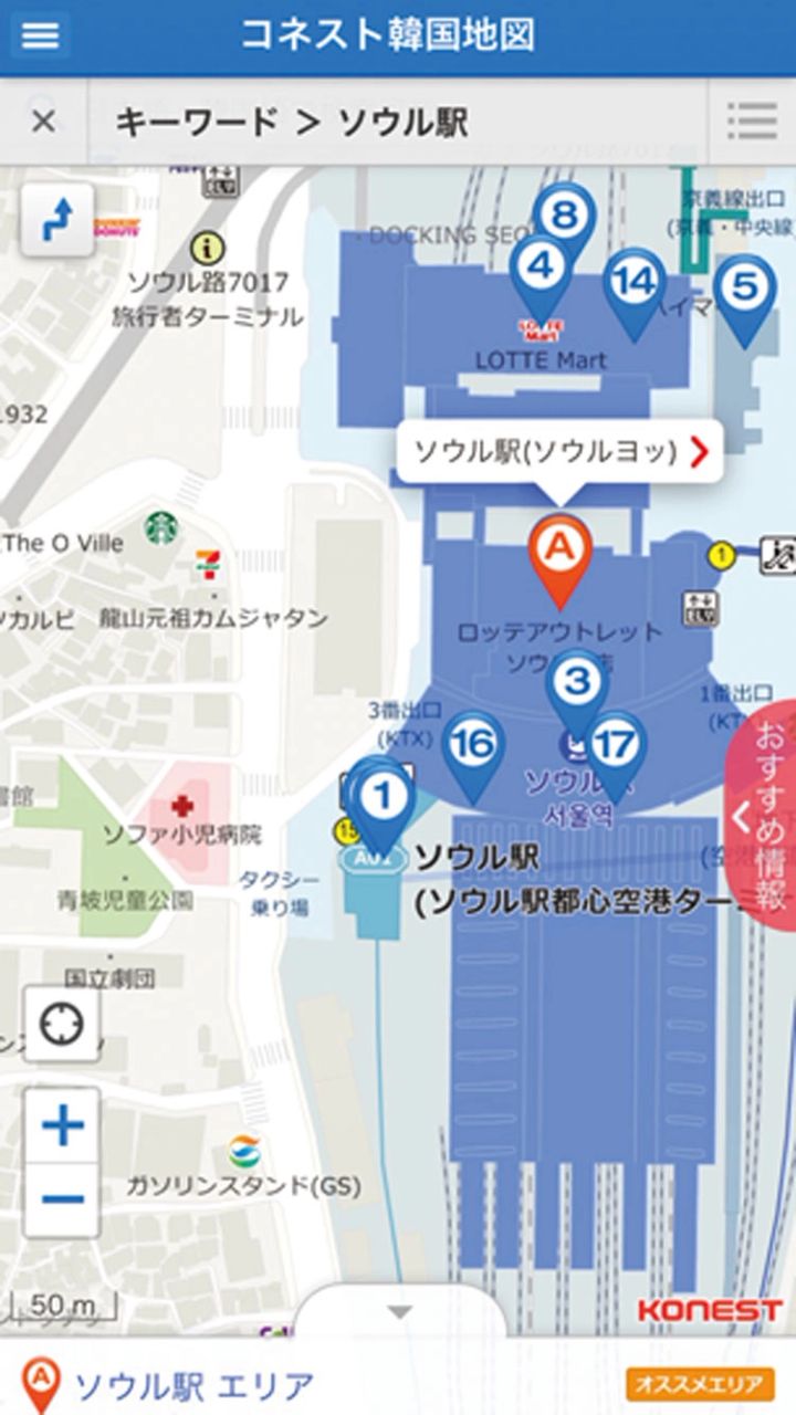 韓国に行く際は必須な、完全日本語の韓国の地図アプリ。それぞれのエリアの特徴と位置関係がわかりやすく把握できるようになっているのも魅力。