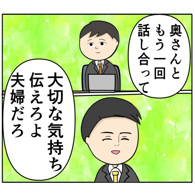 「奥さんともう一回話し合って、大切な気持ち伝えろよ。夫婦だろ」