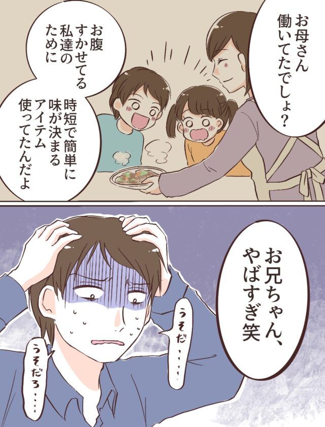 「お義母さん働いてたでしょ?お腹空かせてる私達のために時短で簡単に味が決まるアイテム使ってたんだよ」