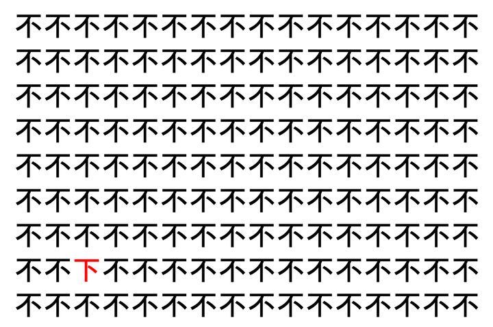 画像の中には、「不」という漢字が縦に9行、横に16個並んでいます。 全部で144個となりますが・・・、そのうち1つは「異なる漢字」となってますよ!!
