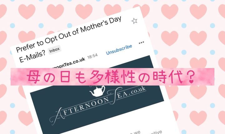 最近よく届くのが、「Prefer to opt out Mother’s Day email?」というメールです。Opt out(オプトアウト)とは、身を引く、取り除く、といった意味の英語です。さまざまな事情で母の日のニュースを聞きたくない、そんな人に向けた配慮が今年は多いように感じます。