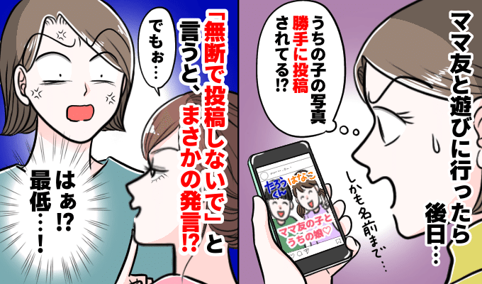 私の息子が写った写真を、勝手にSNSへ投稿したママ友。顔がはっきり写っているし、本名までも記載……。やめてほしいと伝えたところ、ママ友はまさかの発言をしてきて……。