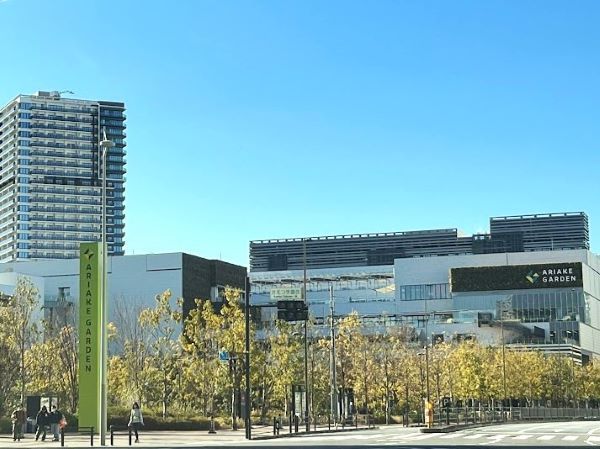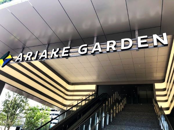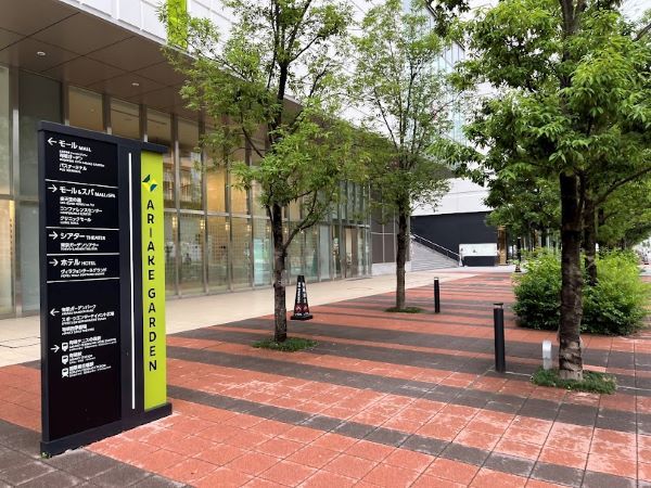 芝生の「有明ガーデンパーク」と立体駐車場の間、モール棟から行くと屋内イベントスペースの「有明ガーデンギャラリー」と「駐輪場」の奥にあります。
