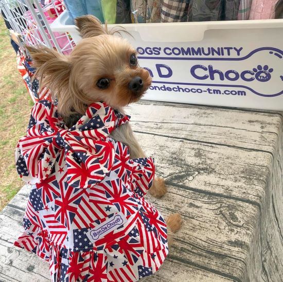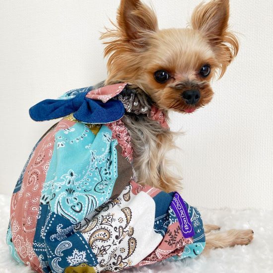 大きなリボン付きのワンピースがお気に入りのショップです。我が家の先代犬の頃から愛用していて、このリボンワンピは柄違いで50着ほど持っています。夏に向けてハワイアン柄のリボンワンピもオススメです。サイズオーダー可、大型犬にも対応しています。
