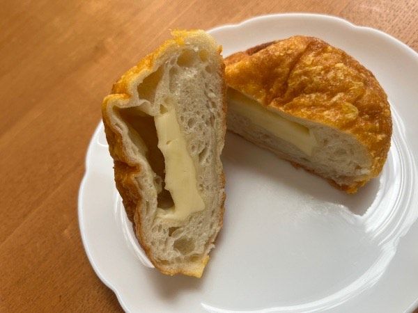 こちらも必ず買うパン「フロマージュ」です。 デンマーク産サムソーチーズを包みチェダーチーズをトッピングし焼き上げてあります。 ぎっしり入ったチーズを堪能できます。