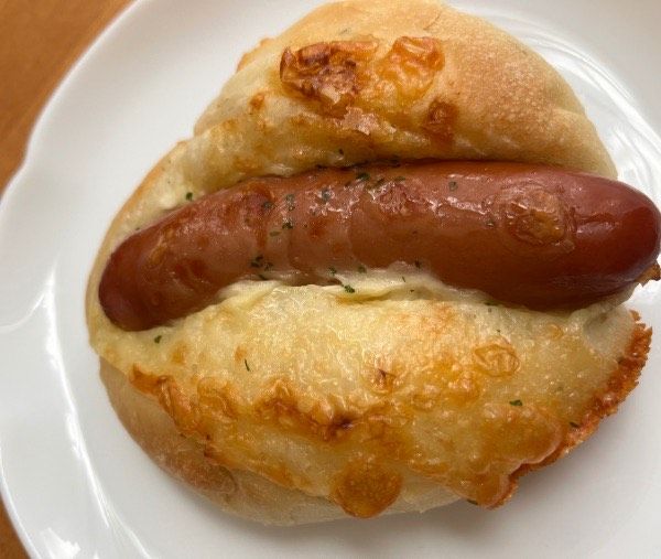 夫が大好きな「ポーク ブルスト」です。 ハーブ入りの生地にサワークリーム、ソーセージ、チーズをのせて焼き上げてあります。 ソーセージが大きくて食べ応えがあるパンです。