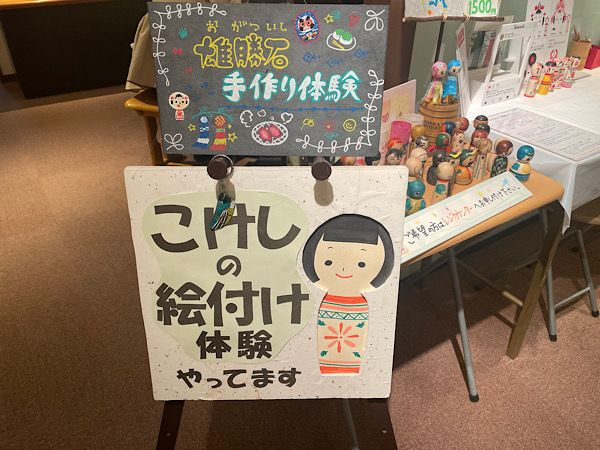 こちらではミニこけしの絵付体験などができます。 フェルトペンで行うので小さいお子さんでも簡単に絵付けができちゃう!