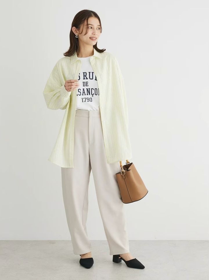 インナーにカットソーなどを合わせればカジュアルに、一枚で着ればキレイめと、シーンに合わせて着まわすこともできます。