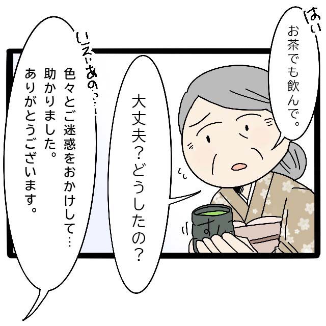 女将さんが淹れてくれた温かいお茶を受け取り、ユキさんは少し元気になって笑顔が戻りました。