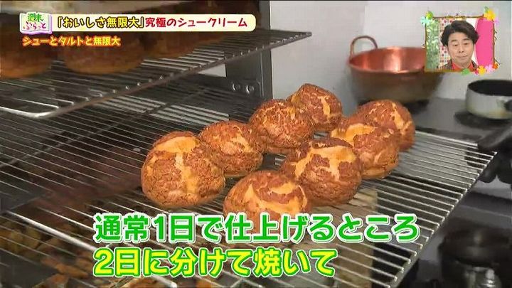 シュークリームの皮は通常1日で仕上げるところを、2日に分けて焼きこみ