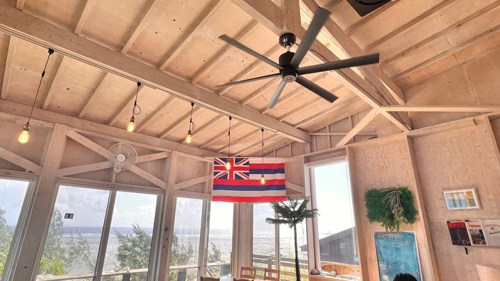全面窓からは海や空の景色が素晴らしく、店内に入ると息をのむ美しさに子どもたちも感動。