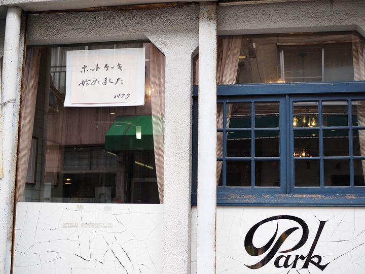 店先に「ホットケーキ始めました」が貼りだされると、本当の冬がはじまったぞ、という感じがする。なぜなら〈喫茶パァク〉のホットケーキは冬限定だから。お店の方に「ホットケーキはいつからいつまでですか」と訊ねると「きっちり決まってるわけじゃないの、さむくなってから、あったかくなるまでかなあ」「桜があるころまではいつもやるかなあ、みんなが(あったかくなってきたなあ)って思い始めると、注文もすくなくなるしね」とにこやかに教えてくださった。