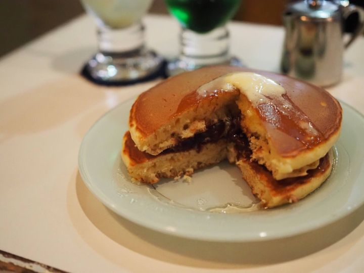 ホットケーキが提供されるまで、しあわせな待ち時間がある。ひとりならば、読書に集中し始めたころ。だれかと来ていれば、談笑してちょうど話に花が咲いたころ。甘い匂いがして運ばれてくる。