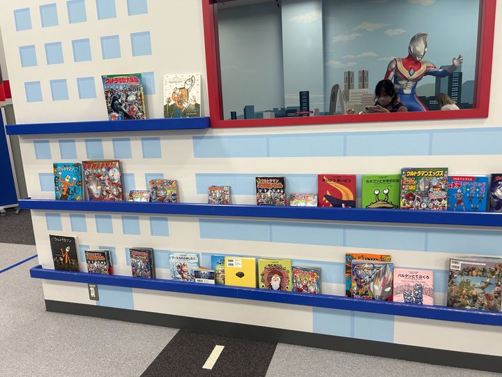 イベントステージの近くにはウルトラマンに関する絵本や図鑑もあるので、疲れて一休みするときにちょうどいいです。