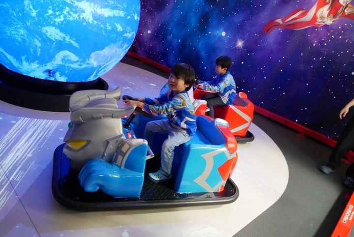 という、ウルトラマンの形をした乗り物が2台ありまして1人2分間運転ができます。