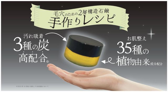 そこでペリカン石鹸はそんな毛穴悩みに寄り添うべく、毛穴汚れ吸着効果のある「炭」を最大限に配合した、最強のブラック洗顔石鹸の開発にチャレンジ。累計3,000万個以上の炭配合石鹸を製造してきたペリカン石鹸だからこそできる、毛穴のための石鹸を目指して開発されたのが「魔女のブラック手作り洗顔石鹸」です。