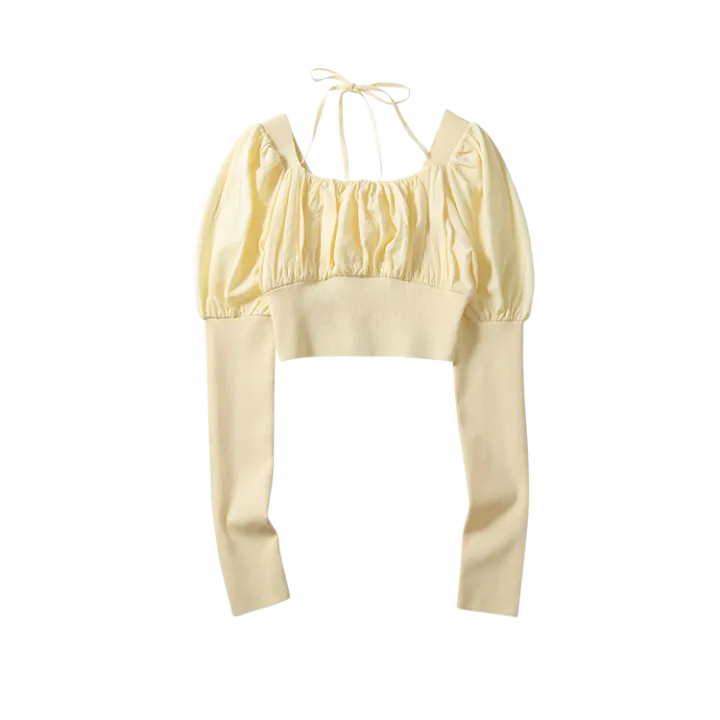 Item イエローギャザークロップドニット
