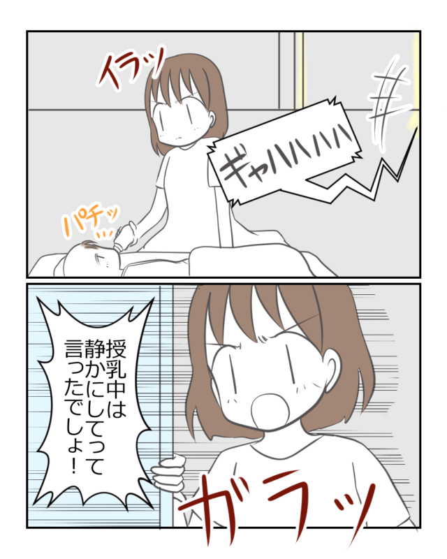自分の中でプツッと何かが切れて、気が付くと哺乳瓶を床に投げつけて怒鳴ってました。